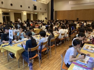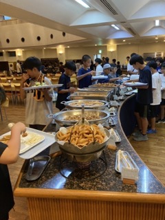 19:00  夕食バイキング  唐揚げが美味しくてみんなおかわりしているそうです。
