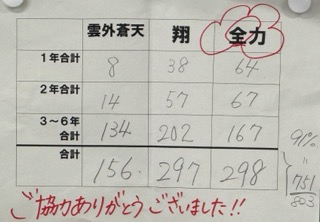 ということで、企画委員会が運動会の絵テーマを決めるために全校児童にアンケートをとりました。低学年はシールや挙手、中高学年はタブレットを使って投票しました。なんと投票率は91パーセント!すごいですね。