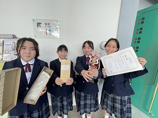 ンブルコンテストで見事金賞を受賞しました。深野茉莉衣さん、新垣碧夕さん、金城裕花子さん、牧優里さんの4名です。