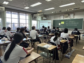 全校生徒の投票の結果、1年4組の泉美玲さんの考案した「いじゅさん」に決定しました!この後、名称は再度全校生徒に募集します。そしてスタンプのように様々なバージョンもみんなに考案してもらおうと考えています。例として新司先生が特別にデザインした石嶺中学校のUFO体育館をモチーフとした「ゆふぉくん」が紹介されました。スタンプ展開して、「いじゅさん」(仮称)も様々な場面で活用できるようにしていきたいです!