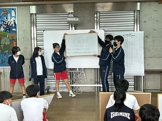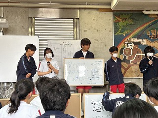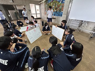 本日午前は生徒会総務と3年生リーダーズによるリーダー研修Hopです。ホワイトボードミーティングによるファシリテーション研修を実施しました。アイスブレークの後、各団グループに分かれて「錬心祭」のスローガンを考えました。どんな想いを込めたのかプレゼンするとツッコミ質問が来ます。それに対してしっかりと回答する姿はさすが3年生だなと感心しました。各団計4つのスローガン候補を決定し、8月のリー研Jumpで行うスローガン選挙用の動画撮影を行いました。午前中最後の研修は団アピールダンスのコンセプトメイキングです。かわいいダンス、かっこいいダンス、魅せるダンスなど、自分たちの団はどんな曲を用いてどんなダンスにするかを話し合いました。入退場の曲まで決定した団もありました。午前で3つの研修をこなした3年生リーダーズ、さすがです!!!