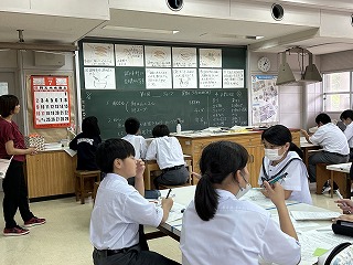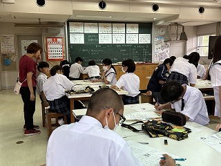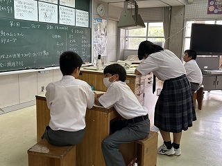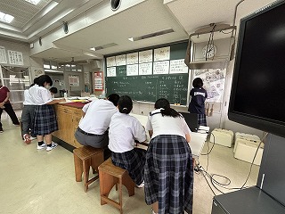 家庭科の授業では調理実習に向けての事前学習を行っていました。