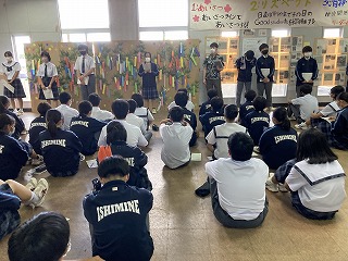 100人ほどの参加者が石嶺中リーダーズとして、これから生徒主体の絆づくりに向けて頑張ります!