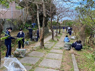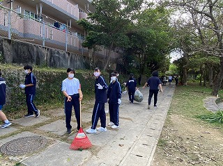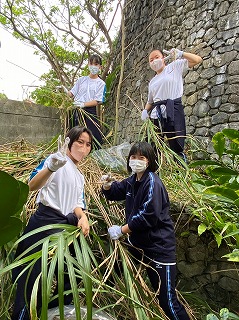 19日(日)8時より、1学年生徒、保護者、地域の皆様によるPTA作業が行われました。敷地の多くが緑で覆われている石嶺中学校は、環境的にはすばらしいですが、整備面では日々の清掃活動だけではとても追いつかない量となっています。親子美化作業としては今年度初の取り組みとなりました。多くの皆様のご協力のもと、とてもきれいに整っています。石積みのグスクのような階段もあって、長い歳月をかけて自然豊かな学校となっています。これをきれいに守っていくことの大切さを親子、地域の方々とともに実感する日となりました。1年生の皆さん、先生方、保護者の皆様、地域の皆様、ありがとうございます!!!