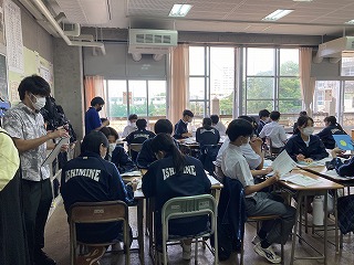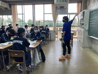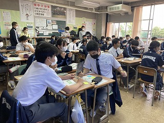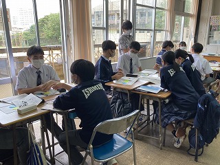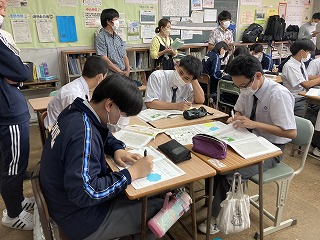 本日3校時、3年4組で担任の天願教諭の道徳の研究授業が行われました。内容項目は生命の尊さです。臓器提供の意思表示について、子を持つ母、最愛の妻がいる医師のふたつのケースをもとに、自分の考えを問う授業でした。