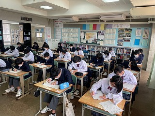 また、話を聞いた1年生からは、先輩方に様々な質問をしていました。「苦手教科をどのように克服していたのか」「勉強と部活の両立はどう工夫していたのか」など、自身の悩みを先輩にぶつけていました。聞きながら一生懸命メモをとっている姿も印象的でした。それぞれの高校の情報を得ることができ、自分の進路選択に向けて、自分事として向き合っている1年生でした。学びの多い進路学習会でした。