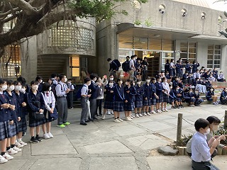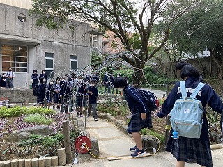 12月といえばクリスマスシーズン!本日放課後、体育館前の中庭でイルミネーション点灯式を行いました。