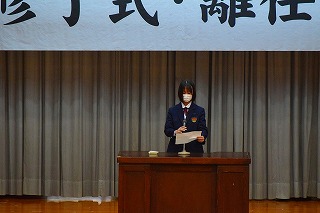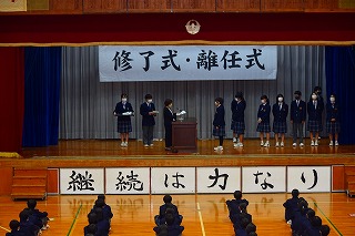 1年生、2年生の課程を修了する修了式が行われました。各学級の代表に修了証となる通知表を授与しました。