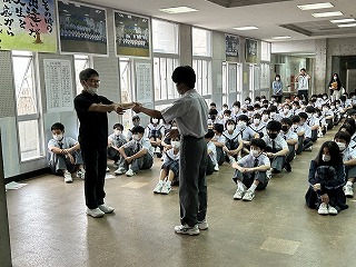 最後に学年主任の麻衣先生から、出席の取り扱いについてや行動する際の基準についてなど、1年生が学校生活を送る上で大事なお話がありました。締めくくりにはみんなで「合言葉は『錬心』!」とこぶしを上げて心が一つになりました。