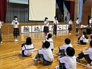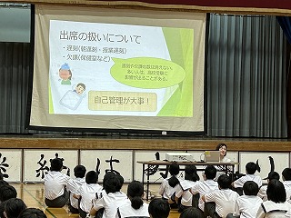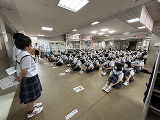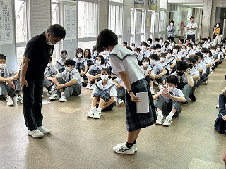 今朝は学年朝会がありました。2・3年生は学年フロア、1年生は体育館に集合しました。1学期の正副級長の任命式と決意表明、学年主任からのお話がありました。