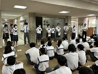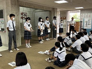 2学年は修学旅行があります。常に時間を意識して行動し早めに集合しましょうと学年委員からの呼びかけがあり、きちんと整列しているところは素晴らしいです。