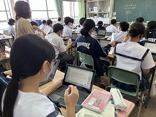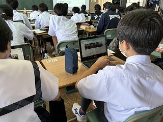 本日、生徒一人一人に一台の端末を配布し、GIGAスクール開きを実施しました。始めに、学校でコンピューターを使用するにあたり、たくさんの注意事項、禁止事項の説明がありました。またこれから3年間この端末を使用するために、自分の名前シールを貼りました。小学校の時から使用しているアカウントでログインして、これから授業で使用するクラスルームに全員が入ることができました。
