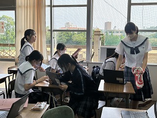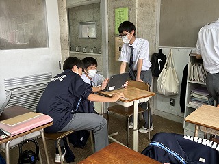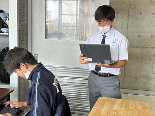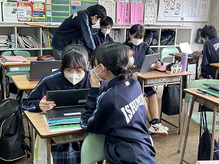 3年4組の英語の授業では、みんながタブレットに話しかけています。何をしているのか聞いてみると、今年から新たな取り組みでワールドクラスルームで海外の人とつながることができるそうです。その練習で自分の自己紹介を英語で動画に撮っているとのことでした。これからの英語の授業はなんだか楽しみですね!