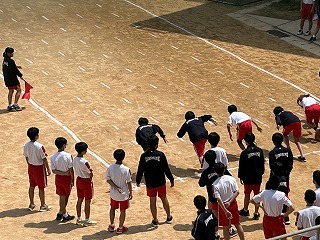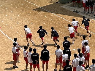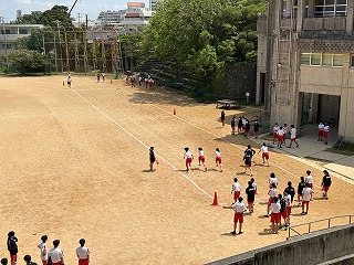 3年生の体育の時間は体力テストで50m走を測定していました。全力で走る機会は日常では多くありませんが、男子も女子も頑張って走り抜けています。
