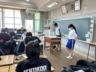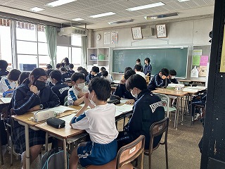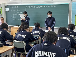 今日の学級討議では生徒会総務やそれぞれの委員会などへの質問が出されたと思います。これから生徒総会を通して、よりよい石嶺中学校の校風や生徒会活動を、みんなで力をあわせて作り上げてほしいです。