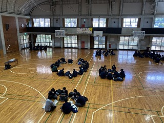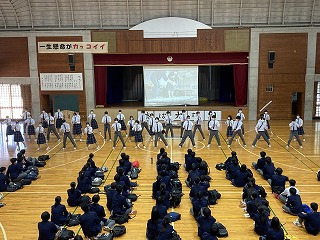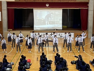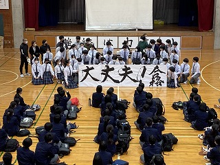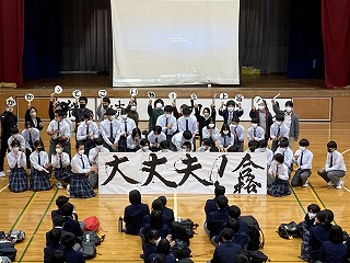 最後に、受験生応援ムービーが披露され、前年度まで担任をしていて本校を去った先生方からの応援メッセージ、推薦内定者や3年職員による応援エールがあり、体育館はなごやかな空気に包まれました。