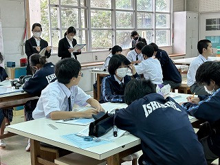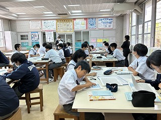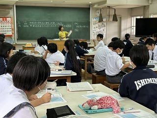 本日、沖縄大学の2年次の学生5名が観察実習で石嶺中学校に来ています。