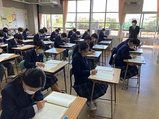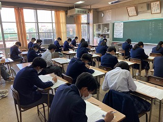 3年生は2日間にわたり総合テストです!朝から気合が入っています!1校時は国語のテストでした。