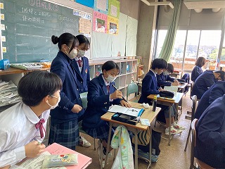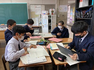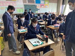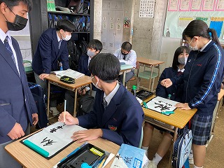 2年生も年明け一時間目の授業頑張っていました!国語は書写のようです。英語の授業は修学旅行で見学した京都についてグループ活動を通して紹介する授業を行っています。