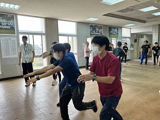 自分の殻をやぶり、仲間の中でありのままの自分でいられるように少しずつ仲良くなっていく構成になっています。即興でペアであるものになりきるインプロゲームや、納豆の川を協力して渡るPAゲームなど、実際に生徒におろすときにどんな工夫が必要なのかを途中途中でシェアしながら、教育実習生も一緒になって、とても有意義な研修となりました。学級や学年でぜひ取り組んでみてくださいね!