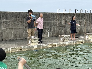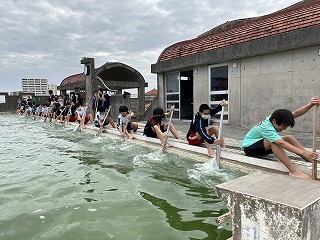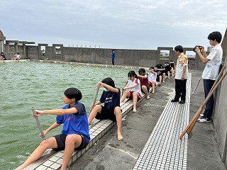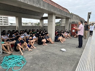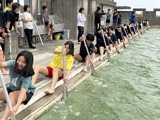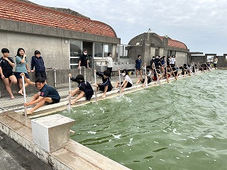 30日はいよいよ海上での練習になります。乗船には支度が必要なので1時間前には集合するよ!と聞いて、ハーリー選手団はまた気合が入りました。本物の波や風を感じてハーリー船に乗ってみたいですね!