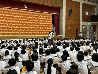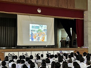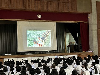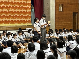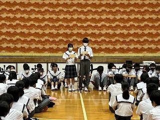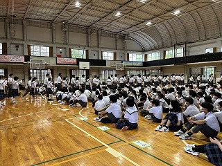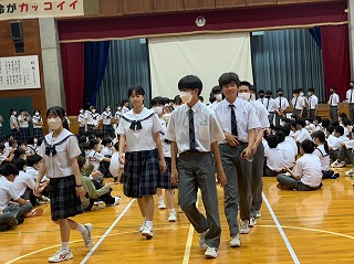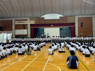 今朝の生徒会朝会はハーリー選手激励会でした。