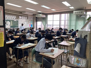 2年生も1年生も45分間問題に向き合い、最後までねばり強く取り組みました。自分がどの程度解けたのか、きっと自分自身がよくわかっていると思います。そのままにせず、弱点克服に努めましょう!