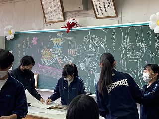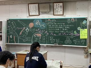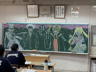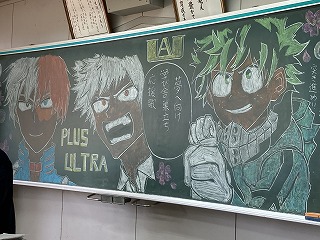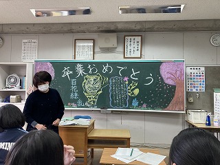 それぞれの教室に、黒板アートで卒業に向けてのメッセージが!