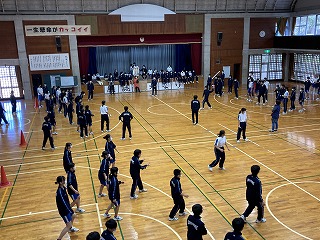 1年生は学年委員さんを中心に準備を進めてきた学年レク本番でした。最初にクラス対抗のドッチボールでは、キャーという歓声があちこちからあがり、とても楽しそうです。