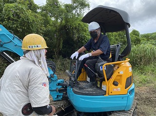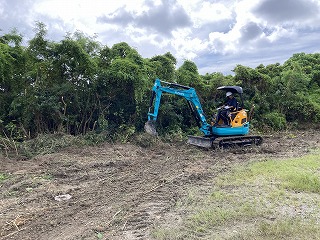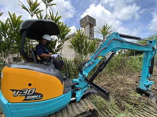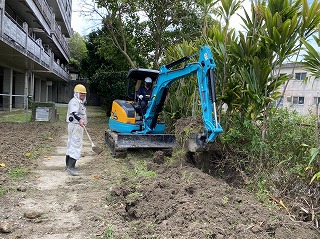 ショベルカーを操って、人力では無理な場所を整地してくれました。