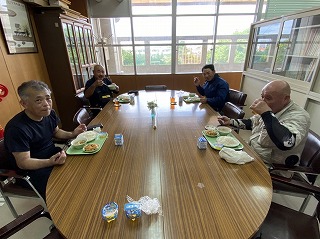 お昼はともに作業をした教頭先生と一緒に給食です!