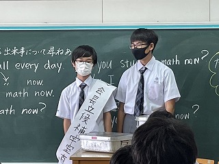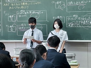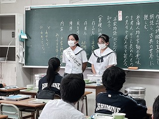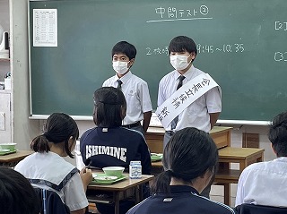 11月30日の生徒会役員選挙を目前に控え、給食時間を活用して立候補者が各教室で演説を行っています。