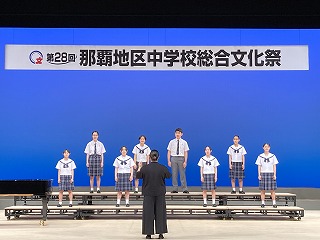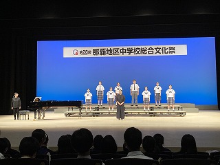 本日なはーとにて、第28回那覇地区中学校総合文化祭が開催されました。午後の舞台の部には本校合唱部が出場しました。