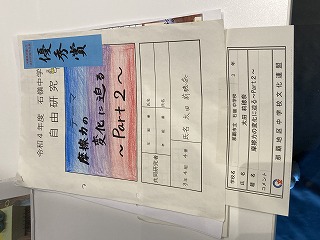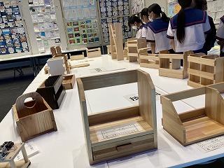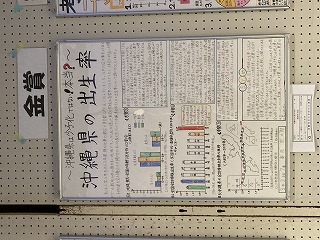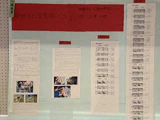展示会場では、それぞれの教科で出品した理科の研究や社会科新聞、統計グラフ、技術・家庭科で制作した作品の数々、チャレンジの皆さんが制作した作品が展示され、嶺中生の頑張りをなはーとの会場で見ることができて大変うれしく思いました。
