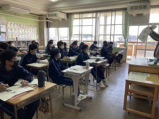 1、2年生は学年末テスト直前でそれぞれの教科でテストに向けての総まとめを行っていました。