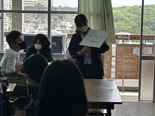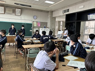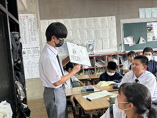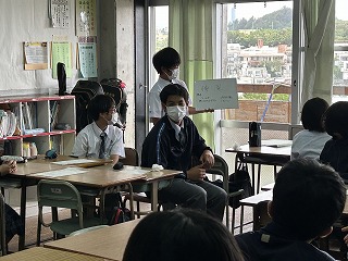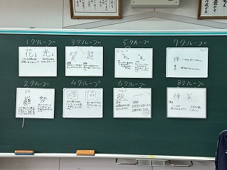 グループで2年1組が目指したい姿を漢字一文字で表すと何がいいか、候補を2文字ずつ選んでその理由を発表していました。