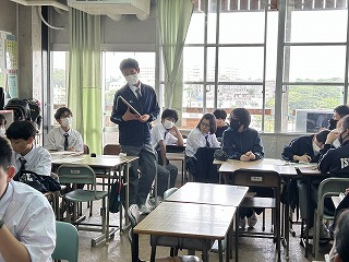 それぞれの漢字に意味があります。「超」他のクラスを超えるくらい明るくて優しいクラスにしたい。「光」それぞれの光を放ってほしい。「巓」山の頂上という意味を持っていてクラスのみんなで協力して錬心祭などでトップをとりたいから。「輝」2-1は明るく輝いていると思うから。など、選んだ理由が説明されていました。この後どの文字が選ばれたのでしょうか?教室に掲示されるのが楽しみです。