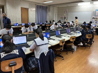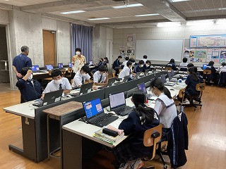本日3校時、コンピューター教室で桃原先生による3年5組さんのプログラミングの研究授業が行われました。