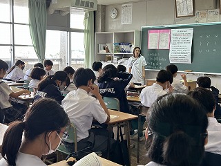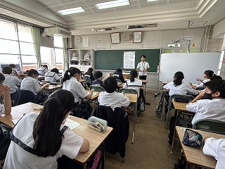 来週に1学期末テストを控え、1年生は学活の時間に初めてのぞむ定期テストの受験心得の読み合わせや、自主学習の方法について話し合っていました。