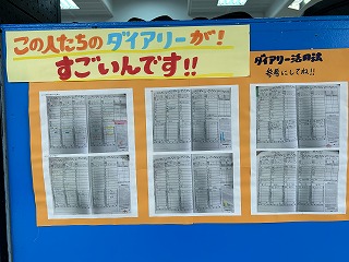 1年1組の廊下に、ダイアリーの掲示物がありました。「この人たちのダイアリーがすごいんです!」と、上手に活用できている人のダイアリーが紹介されていました。明後日からいよいよ長い夏休みに入りますね。期末テストに向けて夏休みの学習計画を立てて対策するための予定表(ダイアリー貼り付け用)が配布されますよ!「計画-実践-期末テスト-振り返り」のスタート地点です。ぜひ、各教科の単元テストの結果も踏まえて、何を頑張るべきかしっかりと決めて、学習計画を立ててほしいと思います!頑張れ!嶺中生!!