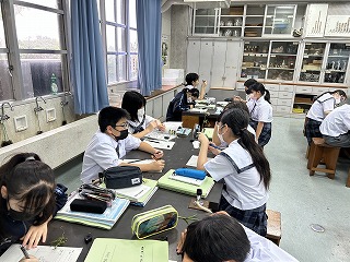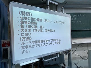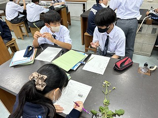 2校時、理科室では1年4組さんが植物の観察をしていました。