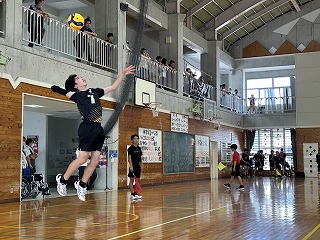 男子バレー同好会は、寄宮中学校会場で対戦相手は首里中学校でした。2年生チームとして、これまで一生懸命練習に励んでいました。