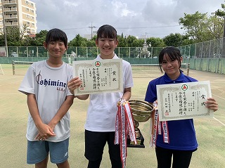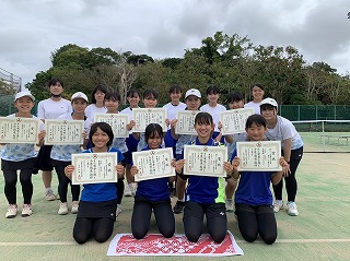 硬式テニス女子の団体戦は、惜しくも準優勝!決勝戦石田中学校に敗れましたが、素晴らしい成績です!おめでとうございます!個人戦では、シングル松代紗衣さんがベスト8、ダブルス比嘉桜実・松代奈海ペアが優勝し見事県大会出場を決めています。
