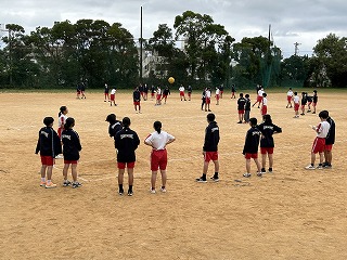 画像からは何をしているか伝わらないかもしれませんが、3年生の体育の授業では体力テストを行っています。今日はハンドボール投げを測定していました。飛距離が大きいと「おお~っ!」と歓声と拍手が起こっています。