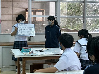 1年1組の家庭科の時間は、「家庭や地域の中で自分のできることを見つけよう」をテーマに、グループで衣食住に分かれて話し合いをし、発表していました。