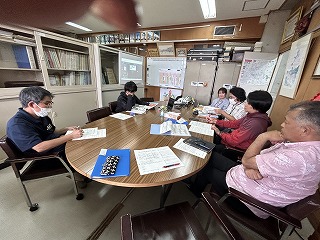 月曜日の6校時は先生方も総合的な学習部会で校内研究を進めています。校長室に集まった各学年の総合担当の先生方が、今週の総合の授業で使用するオリエンテーションのプレゼンや編集した動画を持ち寄って意見交換しました。公開授業研究会を6月13日に3年生の総合「錬心大陸プロジェクト」で実施することも決定しました。