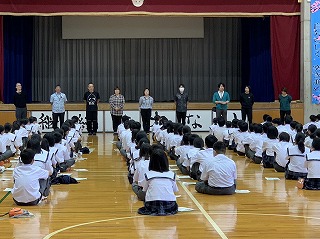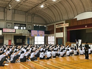 1年生は生徒会入会式後、学年の先生方と一緒に学年開きを行いました。先生方の自己紹介と、石嶺中学校の校訓「錬心」の紹介がありました。みんなで頑張るぞー!「おーっ!!!」と気合を入れています。その後は各学級で係決めなど学級の組織づくりの時間となりました。