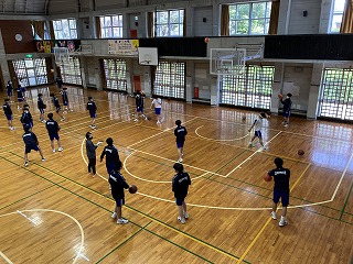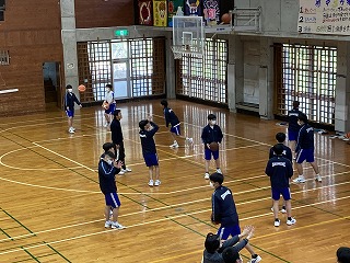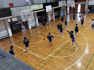 3年生は体育の授業でバレーボールに続き、バスケットボールに取り組んでいました。チームに分かれてシュート練習を行っていました。