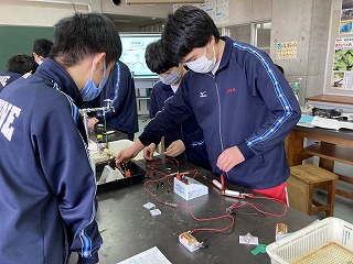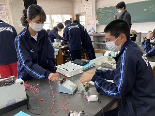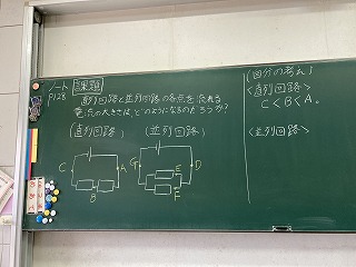 2年生の理科の授業は直列回路と並列回路の電流の大きさを調べる実験を行っていました。回路のどの部分の電流が大きくなるのか予想を立てていましたが実際はどうでしたか?