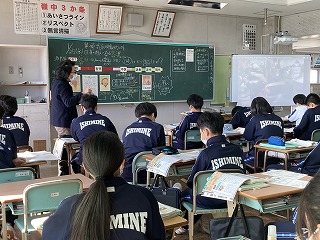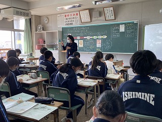 1年生社会科の授業では「海を越えて迫る元軍」として、時代劇の動画で当時の日本の武士と元軍の戦い方の違いを見比べたり、教科書の資料を見ながら考えたりしていました。